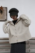 大きなフードが愛らしい表情を作り、コンパクトなシルエットがさまざまな着こなしを叶えてくれる。特別な素材感とレトロなディテールが、普段着にひと味違う個性を加えてくれます。ご自身のスタイルに合わせて、自由な着まわしをお楽しみください。