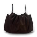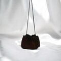 スエード生地のコンパクトな巾着ショルダー。 見た目以上の収納力で