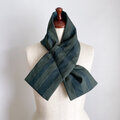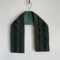 【1点もの】着物 襟巻き ネックウォーマー -絹着物地 紬 深緑によろけ縞 & 新毛斯 鉄色(ヴィンテージ) NW707