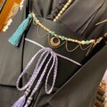 この帯飾りは、「繁栄と富」をもたらすとされるアベンチュリンを贅沢に使用し、金色の装飾とパールビーズを組み合わせた、極めてゴージャスで神秘的な逸品です。瑞々しい緑の輝きと、金装飾の華麗さが、装いに特別な格調と幸福感を添えます。