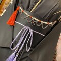 この帯飾りは、「勇気と情熱の石」とされるカーネリアンを贅沢に使用し、パールビーズとハートのチャームを組み合わせた、極めて情熱的でロマンティックな逸品です。鮮烈な朱色とオレンジの房が、装いに特別な活力と華麗さを添え、愛と勇気に。