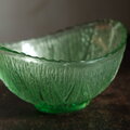 ユニークな形状◆ポップなグリーン プレスガラス変形小鉢 ギザギザ 古民家 古道具 昭和中〜後期