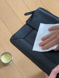 ○革・木家具製品のお手入れは、布だけでなく手やティッシュでの塗布も可能。拭き取りの手間がありません。