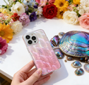 このユニークなiPhoneケースをご紹介できることを光栄に思います--日没。心に浮かぶ美しい瞬間にインスピレーションを受けています。それらは本当に稀で、忘れられないものです。私はその瞬間を自分の手で再現しようと努めています。ですから、すべての作品は私の手で形作られた強い感情を表現しているのです。それは天然の貝殻でできています、貝殻は海の精神です、樹脂のカバーの下で、貝殻は魔法のように見えます、貝殻の輝く効果は異なる角度、異なる時間、異なる照明で変化します。自然がいつもそばにいるように。自然からの美しさ、さまざまな照明や角度の下で輝く瞬間を描写して記録することは非常に難しいですが、それを保持する場合でも、他の人に贈り物として送る場合でも、これまでにない驚くべきユニークな体験になると確信しています。