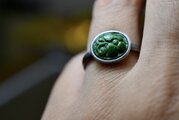 RG10-135 手作り 一点物 シルバー ミャンマー産 A貨 本翡翠 干青 指輪 フリーサイズ 彫り花