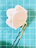 つまみ細工の髪飾り、Uピン一本からお好きな色をお選びいただけます。布は一越ちりめん(レーヨン)を使用しており、柔らかい風合いの布です。