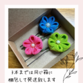 二重丸つまみでお花を作成しており、丸みのある形が特徴の花飾りです。