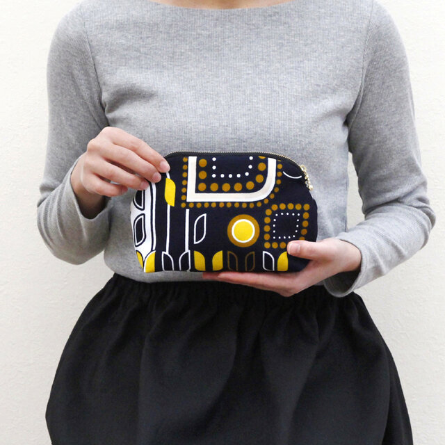 アフリカ布のラウンドポーチ(ジオメトリック)化粧ポーチ ギフト プレゼント 贈り物