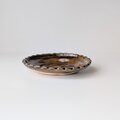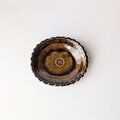 落ち着いた飴色の釉薬が美しく、食卓に温かみを添える陶器の小皿です。