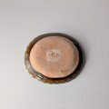 縁はひとつひとつ表情の異なるゆるやかな凹凸が施され、手仕事ならではの柔らかさを感じられます。中央にはお花をモチーフにした自作の印花が入り、存在感を引き立てます。
