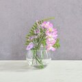 コロンと丸いフォルムのガラスに、ふんわりと挿しました。