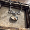 小さな銀のトナカイに、冬の景色を閉じ込めたようなデンドリティッククォーツを添えました。