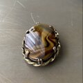 Vintage 60s EURO MIRACLE brown marble stone broach