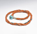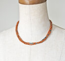 アンティークオレンジ色&水浅葱色&インディゴブルーシードビーズを4連に繋いだネックレスです。
