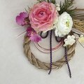 飾りやすい大きさです。アーティフィシャルフラワーを使っていますので、外にも飾っていただけますし、保存しておけば、何度もお使いいただけます。上部に針金をつけてありますので、飾る時にご利用下さい。