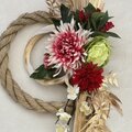 飾りやすい大きさです。アーティフィシャルフラワーを使っていますので、外にも飾っていただけますし、保存しておけば、何度もお使いいただけます。上部に針金をつけてありますので、飾る時にご利用下さい。