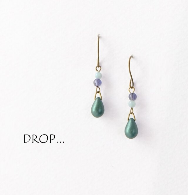 マットな濃い緑のドロップに天然石のアマゾナイトとアイオライトを合わせて