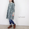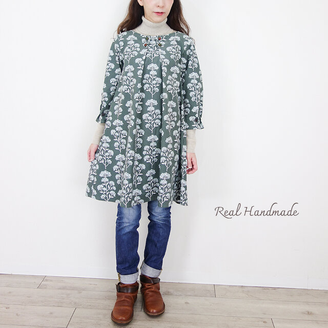 [予約販売] コーデュロイ北欧木の実フラワーと鳥のバックタックワンピース