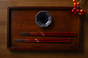 木と木の樹液である漆との出会いで、能登ヒバの美しい木目がさらに際立つ箸。