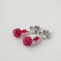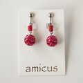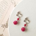 赤系のビーズを丁寧に編みあげた、波模様のビーズボールイヤリングです