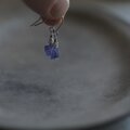 原石の雰囲気が残るタンザナイト(タンザニア産)と小さな粒々シルバービーズを使用したピアス(イヤリング)です。