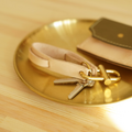 しっとりと味わい深いヌメ革に、温かみある真鍮金具を合わせたスライドロック式キーホルダー。