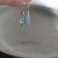 ブルーグリーンのカイヤナイトと小さなシルバービーズを使用したピアス(イヤリングへの変更も可能です。)です。