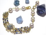 ヴィンテージの、お花の形のフィリグリーにラインストーンが煌めくブルーカラーがメインのブレスレット。