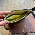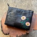 クレイジーキルトを革で施しファスナーポーチを作りました。