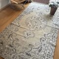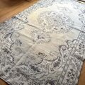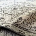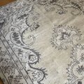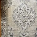 落ち着いた淡いベージュをベースに、こげ茶とごく薄いグリーンが静かに溶け合う大判ラグ。147×272cm のゆったりサイズで、空間に大人の余裕と心地よい陰影をつくってくれる一枚です。中央にはクラシックなメダリオンがふわりと浮かび上がり、派手さはないのに存在感はしっかり。長くそばにあったような安心感があり、部屋に敷くだけで空気がすっと整います。