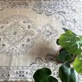 大判147×272淡いベージュ×こげ茶 メダリオン トルコヴィンテージラグ