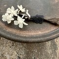 房で咲く白いスイセンを、ドライフラワーのように柔らかく、少し翳りのある色合いで表現しました。