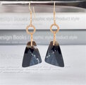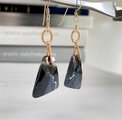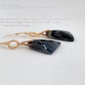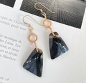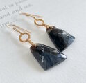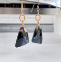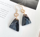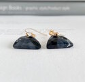 表面がローズカットされた、変形台形型のブラックジャスパーのピアス。