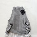 異なる布を組み合わせ、あえてムラや歪みを残し、経年した姿を布花で表現しました。一枚の花びらは、手編みレースを手染めしたものをあわせました。