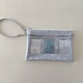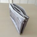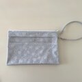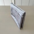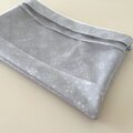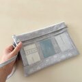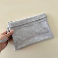ラミネート生地で、A5サイズまで収納できる大きめのダブルファスナーポーチをお作りしました。
