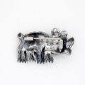 目に黒珊瑚を象嵌したカバの牙を留めています。