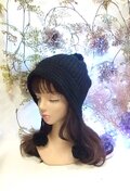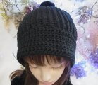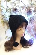 ニット帽子 ニットキャップ ブラック ポンポン 小顔効果