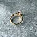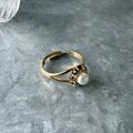 ガーネットカラーラインストーンとフェイクパールが上品なゴールドトーンリング。