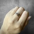 夜空に瞬く星のように、小さな赤い石が指先でそっと輝くリング。