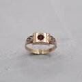 9ctゴールドをベースに、中央にレッドペーストストーンをセットし、