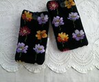 *色 黒地に赤・黄・白等の花々