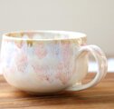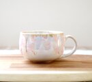 全体に艶やかな白い釉薬をかけたのち、秋をイメージした様々な色合いの釉薬を使用して色付けをしたころんと丸い形のマグカップです。
