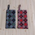 斜めチェック柄の携帯用のティッシュケース(持ち手付き)です。