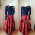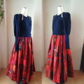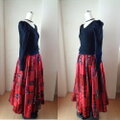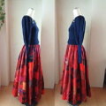 深い赤色系ギャザーマキシとっても素敵。赤系マルチカラーティアードマキシと見比べどっちもも可愛い~可愛い~と連呼、うっとりしています。お作りがとても丁寧で美しく、パーツ生地の並びも最も濃い色(黒地に花柄等)が良い間隔で分散配置されていて素晴らしい。平太ゴムの具合もちょうど良い自然な乗っかり感。年配者なのですがおすすめの作品です。迷われている方はぜひご注文を、と思います。 ありがとうございました!