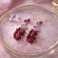下に揺れるふさふさ部分は、深みのある赤紫に染色されたジェイドです。まるで葡萄の房のようなデザインが、装いのアクセントに。