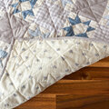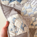 ふんわりとしたキルト綿のやわらかさや、ひと針ひと針入れた不揃いの縫い目に癒され、使い込むほど愛着も湧いてくるパッチワークキルト。