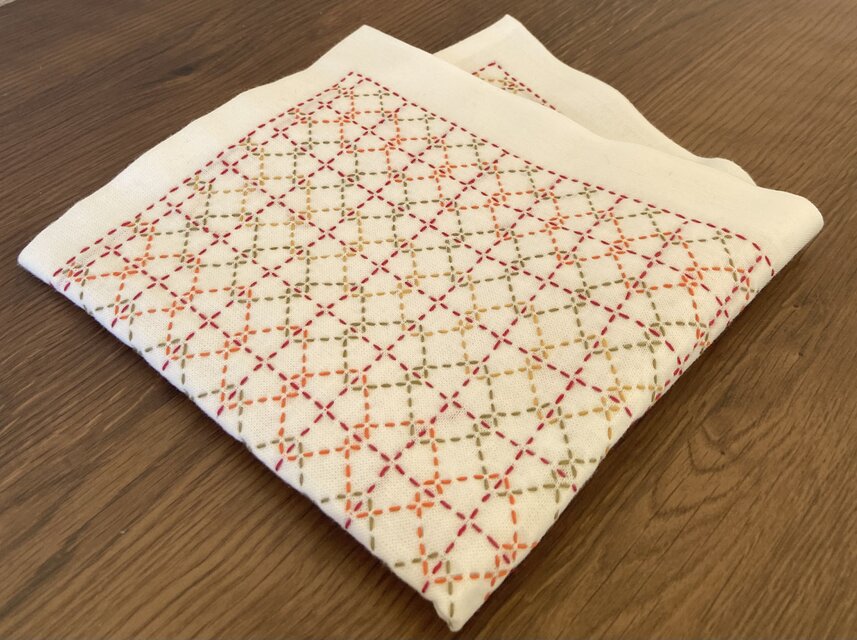 刺し子♡ふきん(比翼井桁・ひよくいげた)です