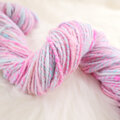 迅速でとてもご丁寧な対応をいただいてありがとうございました。写真で見て一目で気に入って購入しました。昨日毛糸を受け取ったあと、優しくて淡い桜色がとても素敵で、しばらく眺めていました。2度惚れです。(笑)アラン模様のストールを編む予定ですが、模様をハッキリ出してくれそうな、編みやすそうな毛糸で嬉しいです。素敵な作品とのご縁に感謝しています。今後ともよろしくお願いします。