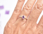 深みのあるパープルが美しいアメジストを、ちいさなしずく型にカットして華奢なリングに仕立てました。