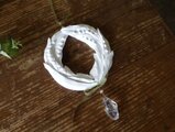 石膏、ワイヤー、オーガンジーリボン、天然石(水晶、ローズクオーツ)